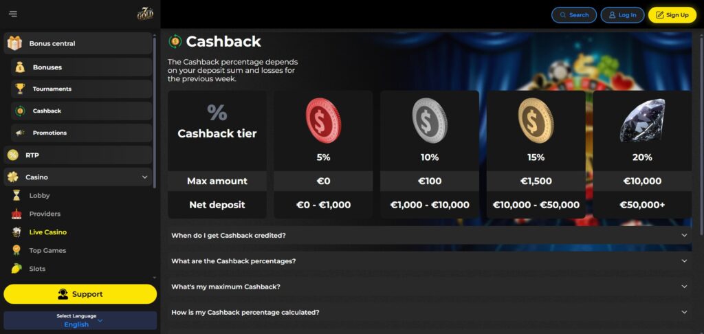 7Gold Casino does not charge fees, but your payment provider may apply its own charges.