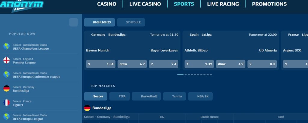 Anonym Bet Casino has a sportsbook that covers all the sports you love. Anonym Bet gives good chances to win on big sports, like soccer, hoops, baseball, and others. It’s the best spot to put bets on the team you cheer for.