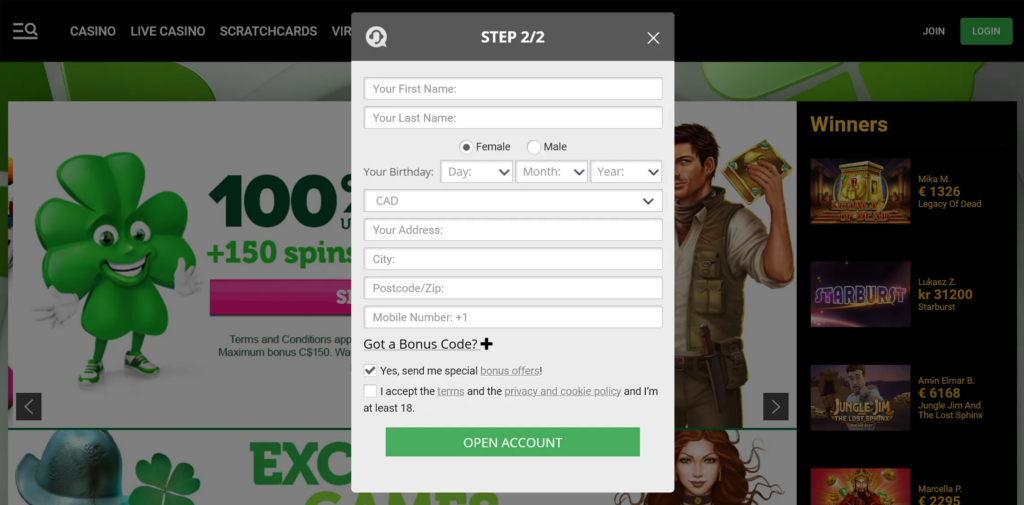 When we tried to join Casinoluck casino, it was real quick, just a few minutes. Here’s what you should do: