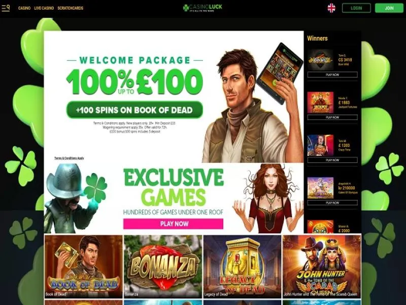 As soon as you land on the CasinoLuck site, you’ll see it’s big news. No time to lose – dive into the heaps of games up for play. There’s a lucky charm – loads of green clovers, and fun cartoons to make you smile. Their site is easy and plain.