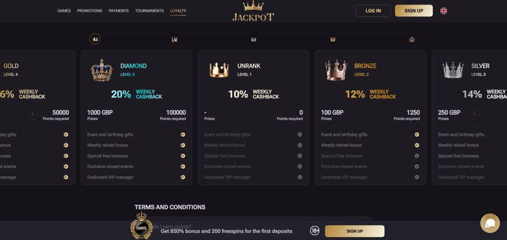 Does Jackpot Casino offer cashback or a loyalty programme?