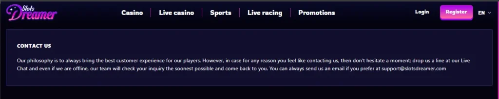 - Customer Support at Slots Dreamer Casino