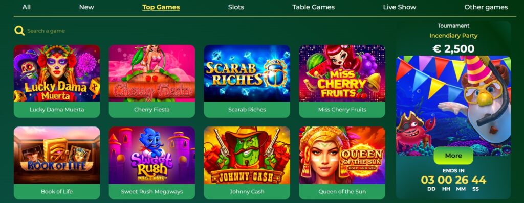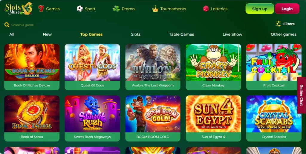 - Slots: You’ll find a huge bunch of slots at Slots Muse, including old-time slots, modern video slots, and big prize slots. You might know some hit games like Gonzo’s Quest, Starburst, and Book of Dead.